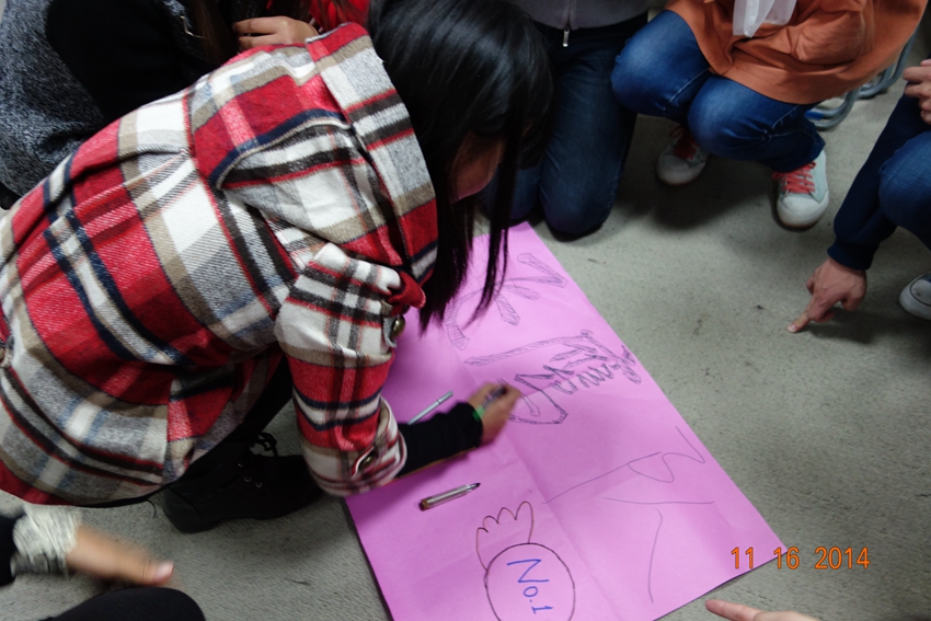 其实这个活动的第一部分,就是让大家记名字的部分让大家慢慢熟悉彼此,也慢慢接收对方,信任对方。要不然,这样十个近乎彼此陌生的人是不可能再半个小时内完成后面的活动的。这是老师苦思冥想设计的环节,良苦用心众人都看得见,所以感谢老师!