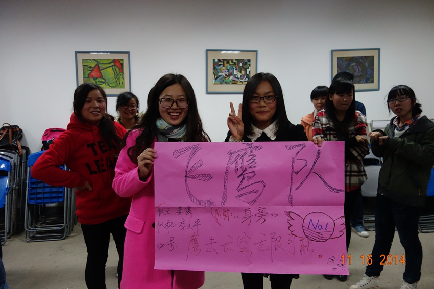 大家很用心的设计每一个环节,虽然我的名字被大家用队名恶搞了一下……潘鹏英,胡彩虹,陈浩远,俞智萌,李秀秀,王洋洋,刘富兰,闫前进,刘权基,冯芳。由于字数问题,就不详细介绍每个人的努力了,但我不会忘记了。