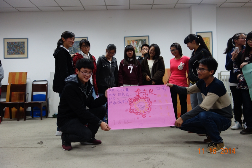 昨天晚上的活动让我了解到了团结的重要与合作的意义 ,合作是最好的与同伴相互了解的机会,通过小组制作队旗,队名,队徽,队号我们熟悉了彼此的特长和性格,使大家通过讨论的形式加深了彼此的印象,通过独特的介绍方式我们都对彼此留了深刻的印象虽然不熟悉但却为接下来的熟悉奠定了基础, 昨晚活动我也很开心,在这里我们提了自己的活力,展现了自己个性,让我们体会到了很多平时无法体会的经历,我想这会让我们终身受益,感谢伯藜学社组织这次“团辅”,让我终身难忘。