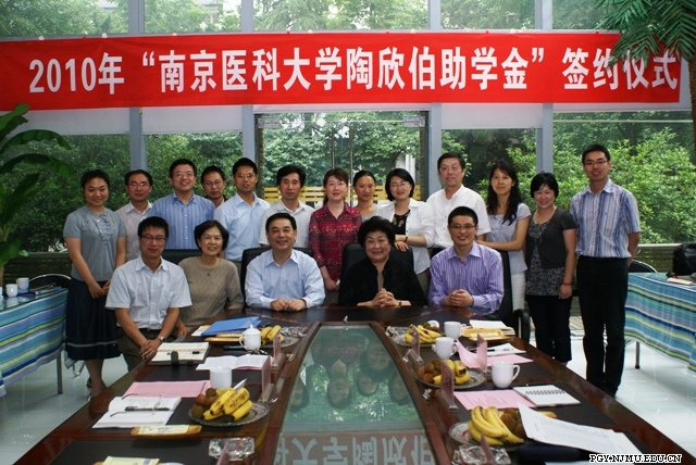 会上,学生工作处江宁玉副处长介绍了我校三年来陶欣伯助学金评选及获助学生情况。连桂芳理事长简要回顾了陶欣伯先生设立此项助学金的初衷和过程,介绍了基金会目前资金运作的情况及长远规划,同时,她希望获助同学真正做到贫困有志、励志成才,每一年都取得更大的进步,将来能够回报社会,报效祖国。刘萍秘书长充分肯定了我校陶欣伯奖助学金联谊会所取得成绩,并就今后工作的开展与我校领导进行了亲切交流。随后,江苏陶欣伯助学基金会理事长连桂芳女士和南京医科大学党委周亚夫副书记分别代表基金会和学校签订了《江苏陶欣伯助学基金会——南京医科大学2010年度助学金协议书》。协议约定2010年,基金会将在前三年资助的基础上,在我校再增加20个资助名额,资助学生数将达到80名,年资助总金额32万元。