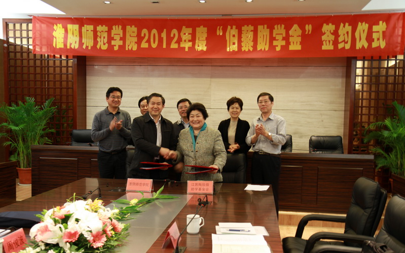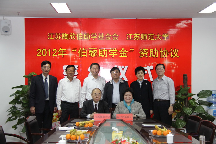 2012年4月25-27日,江苏陶欣伯助学基金会分别与江苏师范大学、淮阴师范学院和扬州大学举行了2012年度江苏陶欣伯助学基金会伯藜助学金”签约仪式及伯藜助学金”管理工作座谈会。连桂芳理事长代表江苏陶欣伯助学基金会分别与这三所学校签订了2012年度江苏陶欣伯助学基金会资助协议,其中淮阴师范学院是今年新增加的合作学校。