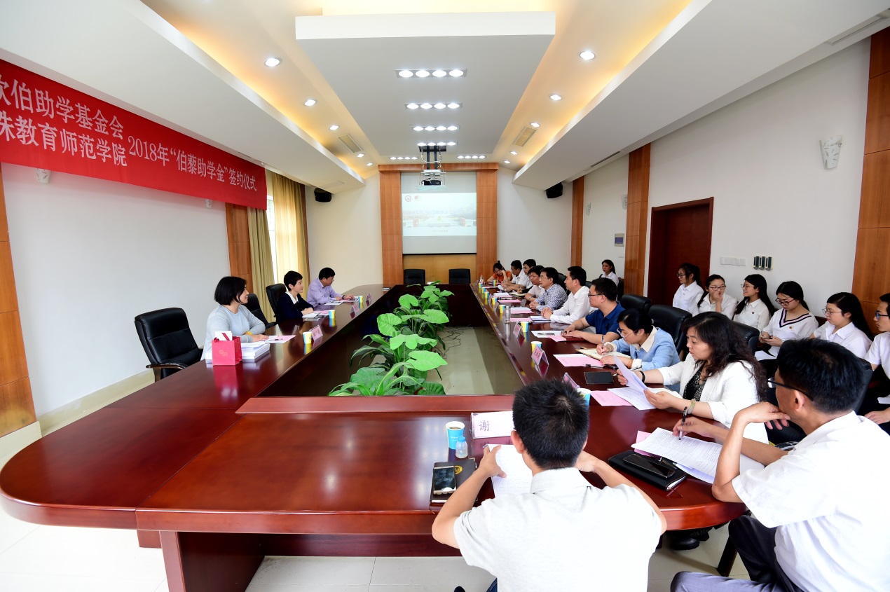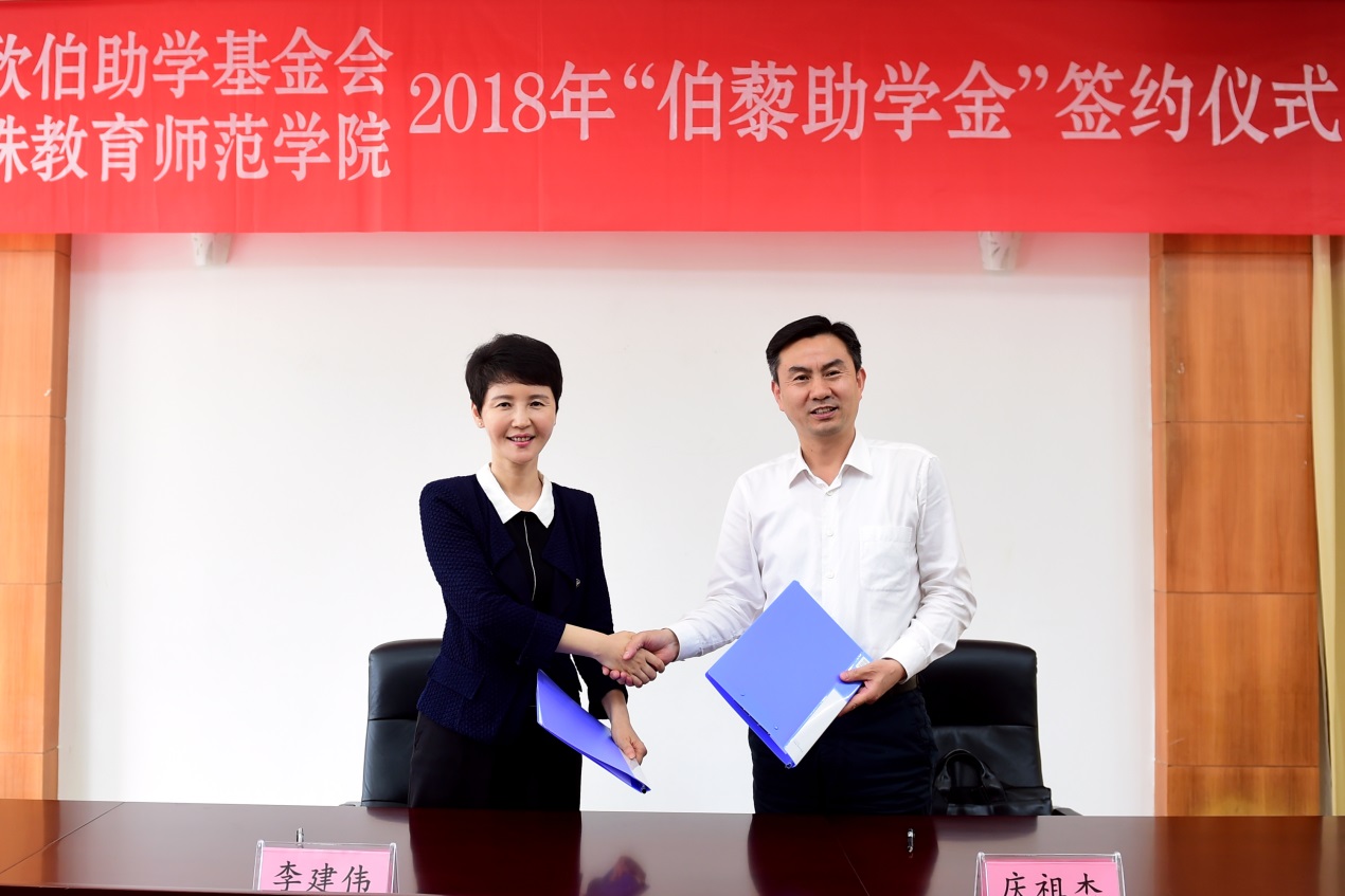 5月31日下午,基金会与南京特殊教育师范学院举行2018年度 “伯藜助学金”签约仪式。江苏陶欣伯助学基金会理事长李建伟、秘书长张利伟、项目二部祖广荣老师,校长凌迎兵、副校长庆祖杰出席了签约仪式,学生工作处相关人员、各学院党总支负责人、部分辅导员老师及学生代表参加了签约仪式。