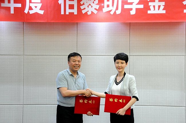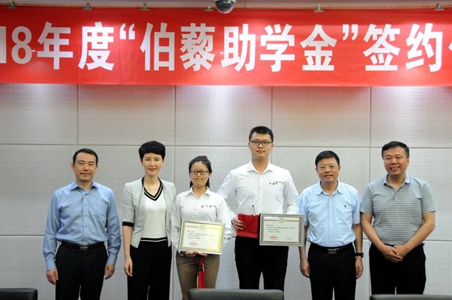 签约仪式上,基金会向该校获得“伯藜之星”的两位陶学子石新玉、徐明浩颁发了荣誉证书、银币和奖金。