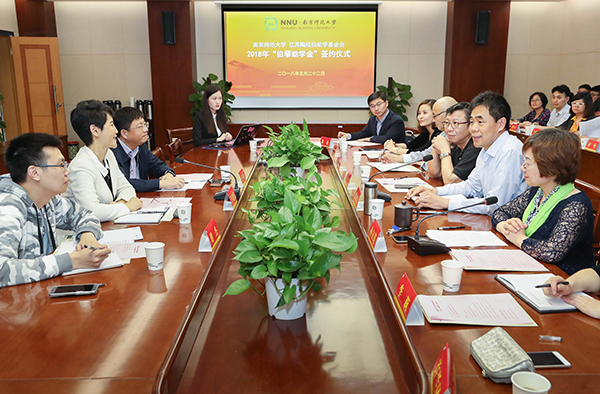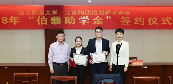 5月22日,基金会与南京师范大学2018年“伯藜助学金”签约仪式在仙林校区举行。江苏陶欣伯助学基金会理事长李建伟、秘书长张利伟,南京师范大学校长陈国祥、副校长张序余、副校长孙友莲出席仪式;校学工处和发展委员会相关负责人,各学院党委副书记、辅导员代表和“伯藜助学金”受助学生代表参加活动。签约仪式由孙友莲主持。