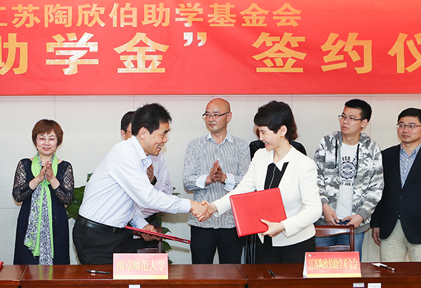 基金会理事长李建伟对学校的大力支持表示衷心感谢,同时转达了陶先生对广大陶学子的热切希望。她表示,我们有责任、有信心、有能力将陶先生对陶学子的大爱精神传承下去,传播出去,让更多人受益。她希望进一步加强与南师大的合作,让更多的学子受益。