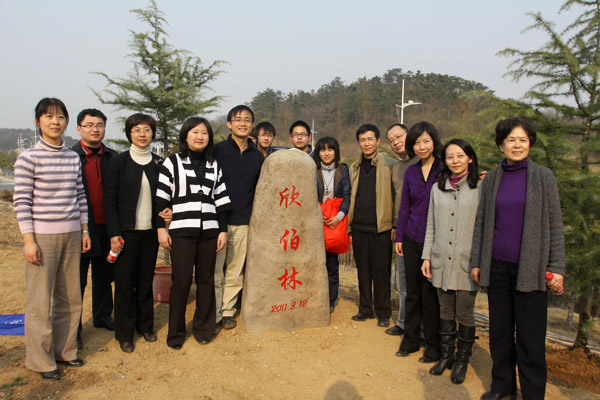 时值我国第33个植树节,淑气骤暖,和风与暖阳也将记录下这美好的时光。在交流过后,所有活动成员前往我校后山,进行植树活动。共同植下棵棵充满希望的树苗,灌溉水源,希望受助的学子们也能如小树一样茁壮成长,也寓意陶先生十年树木,百年树人的教育理念。最后,学工处领导、基金会的老师、哈佛校友代表以及我校受助学生代表共同为欣伯林揭幕。