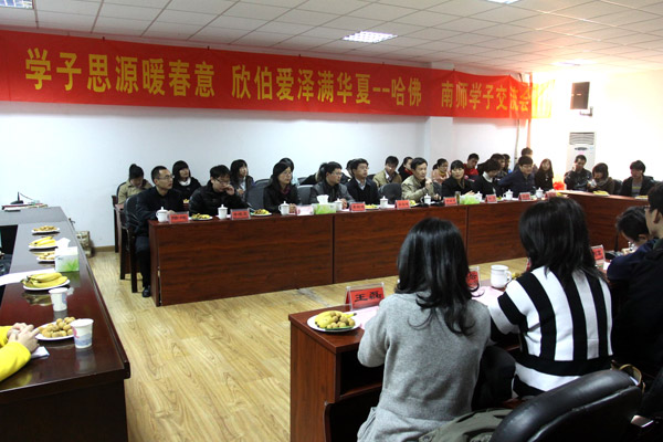 江南三月,晓春时节,草长莺飞,生机盎然。3月12日,来自哈佛商学院受陶欣伯教育奖学金资助的5名毕业生代表;汇添富基金公司总裁林利军、金力泰化工股份有限公司董事总经理钱琼炜、精锐国际教育集团总裁张熙、长物志商贸有限公司总裁胡蓉蓉、渣打私人银行副董事赵路云、陶欣伯教育基金会上海办事处和江苏陶欣伯助学基金会的老师、我校受江苏陶欣伯助学基金会资助的40名学生代表欢聚一堂,举行座谈会。我校党委副书记吴自斌、学工处有关领导和各学院党委副书记、辅导员代表参加了此次会议。