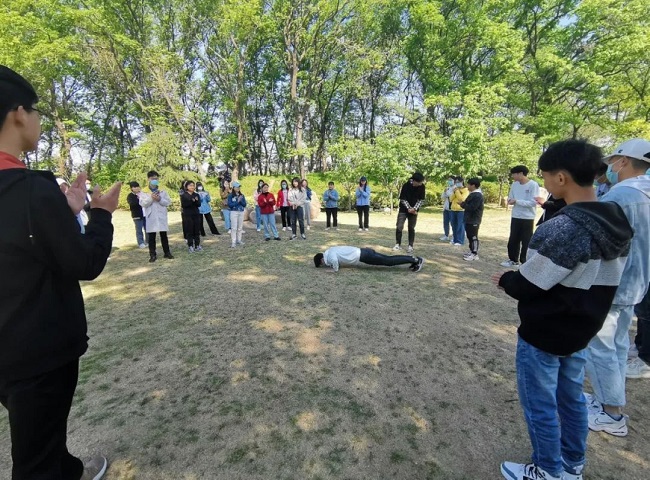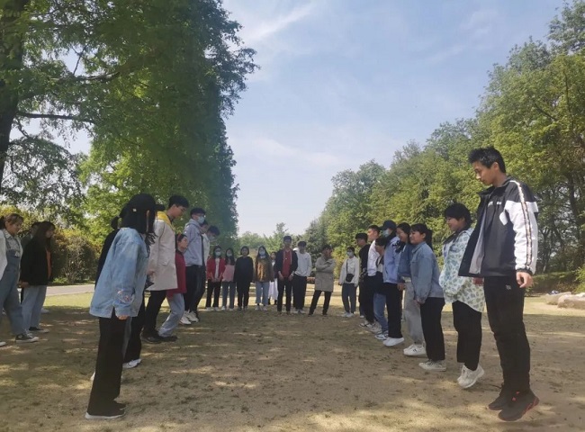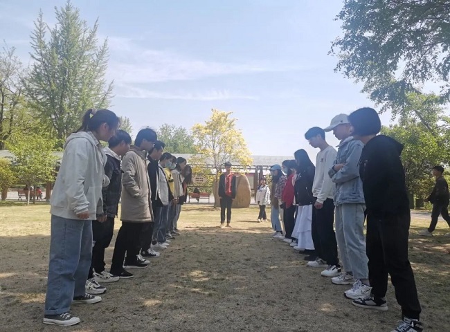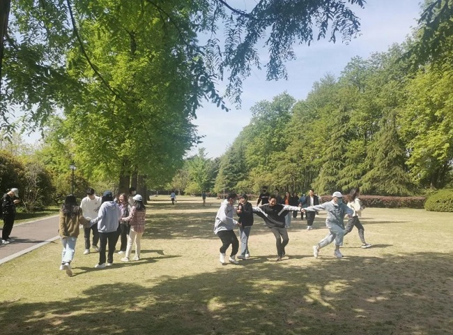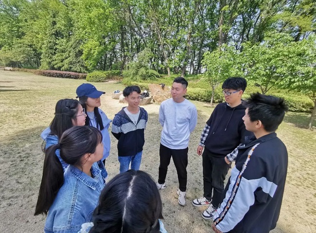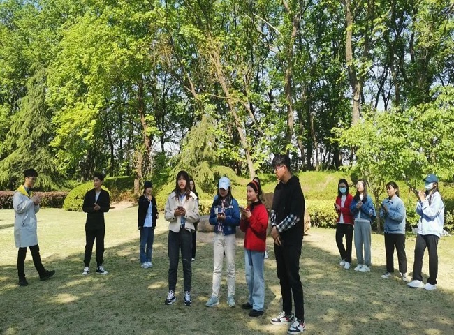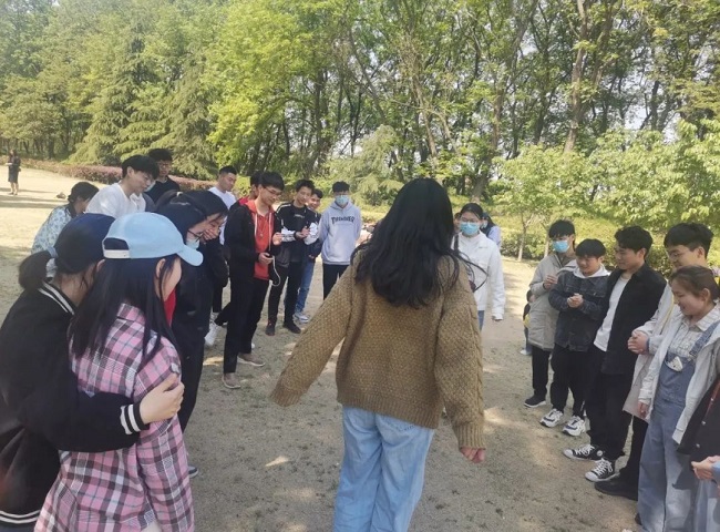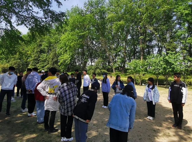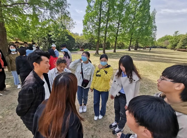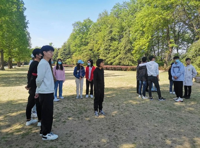 起始,在两校的活动负责人刘艳和尹明宇带领下,陶学子们早上九点顺利地在柳树湾景区集合。而后,两校活动负责人带着陶学子来到铜像广场,围成一个大圈。为活跃气氛,淮师伯藜学社外联部组织了上午的联谊破冰游戏(游戏有三个环节)。