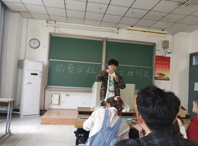 为了锻炼陶学子们的动手制作能力,2021年3月28日,淮师伯藜学社于交通路校区举办了“动手制作以伴休闲,不同寓意相簇心间”的丝网花制作活动。本次活动是由综合部经管学院负责,淮师伯藜学社陶学子们参与。