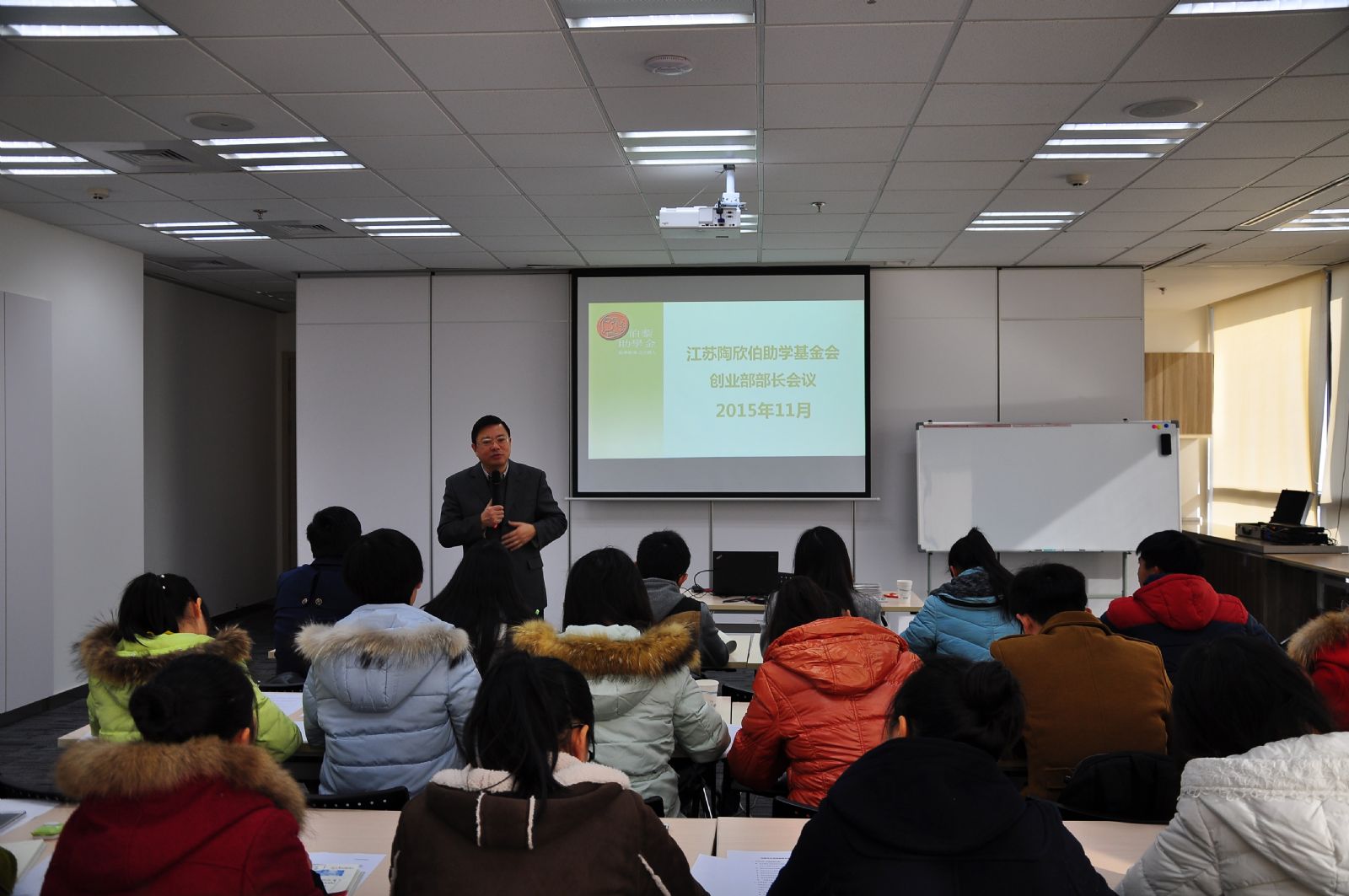 2015年11月29日,江苏陶欣伯助学基金会举行了首次伯藜学社创业部部长会议。22位项目合作院校伯藜学社创业部部长全部到场,另有正在创业的陶学子——江苏大学王阳阳及江苏科技大学徐鹏到场分享自己的创业经历与感悟。
