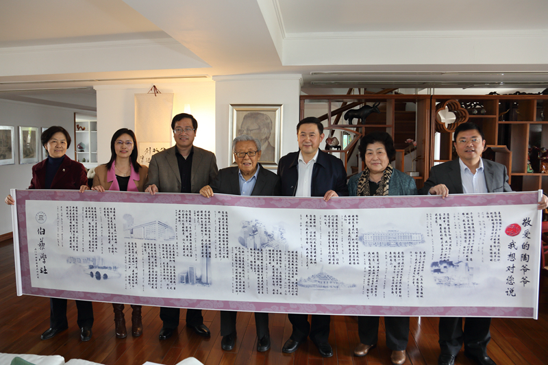 项目学校领导向陶先生表达了敬意和感谢,并祝愿陶先生健康长寿。相关老师还介绍了学校的发展情况及陶学子”学习生活状况,表示学校将与江苏陶欣伯助学基金会共同努力,把陶学子培养成人、成才、成业。