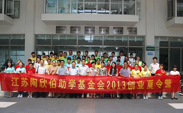 2013年7月9日至14日,由江苏陶欣伯助学基金会主办,南京师范大学商学院承办的江苏陶欣伯助学基金会首届创业夏令营在南京师范大学仙林校区顺利举行。本届夏令营旨在激发陶学子的创业热情,提高陶学子的综合创业能力。经过三个月紧张的筹备,基金会从14所项目院校近百名参加创业大赛的陶学子中挑选出40名优秀代表参与其中,活动安排紧张有序,内容丰富多彩,如素质拓展、市场调研、定向越野、策划书培训、商业路演、压力面试、产品发布会、创业者联欢和手工ERP沙盘等。