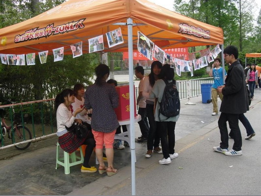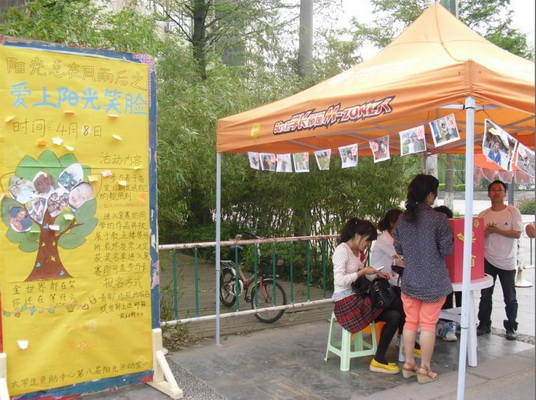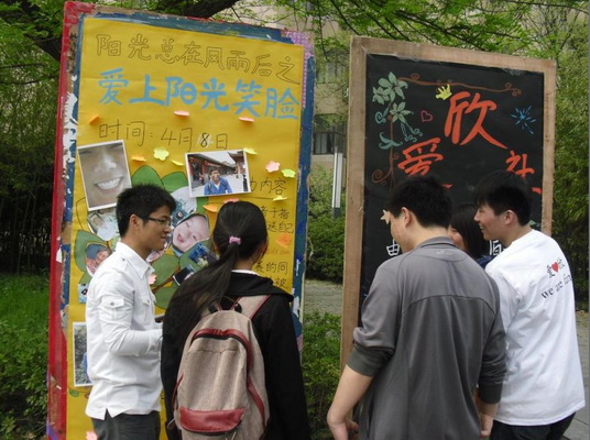 2012年4月8号,我们的活动在学校的青年广场举行,参与的方式有三种,一:现场报名上交一份纸质笑脸照片;二:活动当天现场拍照;三:于指定时间内发自己的一张靓照于指定的邮箱。同学们的积极性都很高,短短的几天内我们便收到了100多张照片,我们也感到很是欣慰,也许这就是微笑带来的神奇力量吧!之后经过社员的共同筛选,选出了30张阳光开朗的笑脸照片,并于16号展示于青年广场,经过大家投票选出了12名获奖学生。