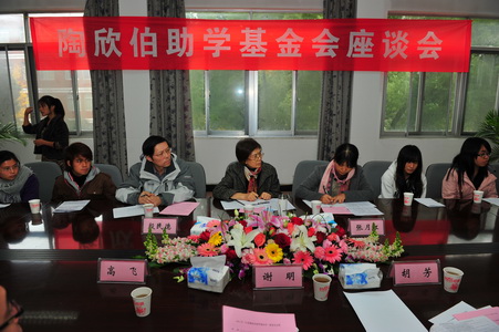 座谈会上,同学们踊跃发言,纷纷感谢陶先生的大爱”精神,表示会合理使用助学金,发挥其补助生活、激励学习的作用。刘萍秘书长鼓励同学们要勇敢面对困难,珍惜大学生活,健康成长。谢书记代表学院向江苏陶欣伯助学基金会”刘萍秘书长一行的到来表示热烈的欢迎,向陶欣伯先生无私资助我院贫困学子的义举表示衷心的感谢,对受助学生提出了殷切希望。