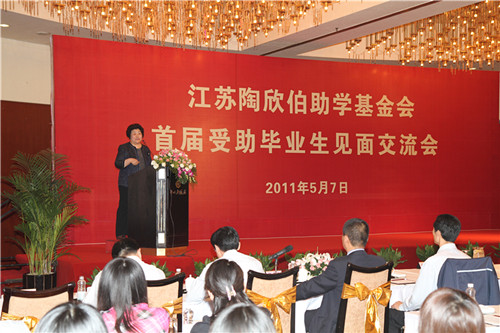 2011年5月7日上午11点,江苏陶欣伯助学基金会在南京中心大酒店成功举办了首届受助毕业生见面交流会”。出席会议的有江苏陶欣伯助学基金会理事、监事、顾问,五所受助大学的分管校领导、学工处领导以及各校资助中心的老师、基金会的工作人员。来自南京林业大学、南京师范大学、南京晓庄学院、南京医科大学和徐州师范大学的90名受助毕业生个个面露笑容,怀着激动的心情参加了会议。
