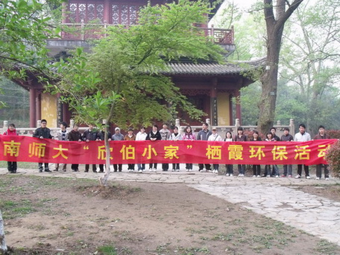 2010年4月17日,踏着初春的气息,南京师范大学欣伯小家”志愿者一行来到了风景秀丽的栖霞山风景区开展栖霞山环保志愿活动。