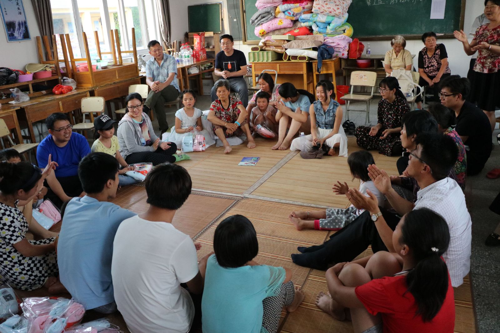 在阜宁县人民医院,我们为受到严重惊吓的59岁老人做心理干预。经我们耐心的心理干预后,她不仅能够开心地笑了,还安详地睡着了。所谓“一方有难,八方支援”,在医院我们遇到了很多志愿者,他们的关怀给了受灾人民很大的信心和毅力,让受灾群众知道了他们的危难处境,时时刻刻牵动着每一位华夏儿女的心,我们都希望他们尽早从灾难的阴影中走出来。紧接着,我们前往了硕集灾民集中安置点,我们把经历灾难的孩子和他们的家人集中起来,在心理咨询师居业老师的精心组织引导、志愿者们热心参与下,为他们做了一次非常有成效的心理干预工作。通过不断地与孩子们沟通交流、互动游戏,他们慢慢地释放情绪,不仅说出了自己看到灾难来临时恐怖的场景、灾后人们救援的情况,还表达了对将来美好的愿望。
