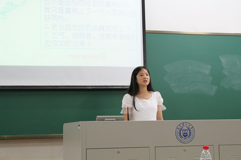 在演讲环节中,11位同学各展风采。其中,王雪同学首先定义自己为“简单女孩”,而后通过分析自身的性格特点和例举聚餐交流、海底一日游等大学生活来体现自己的“简单”;莫海珍同学以自己从一名“菜鸟”转变为业务能手、在南理工青协办公室独当一面等的丰富经历向大家分享了自己的“试剑之路”;谢苗苗同学通过独特的人文视角对同性恋者、乞丐、拾荒者等进行了评价,并对其他社会常见问题进行了简要而犀利的评价,这些评价中显现了她作为文科女的独特人文情怀和社工情怀;随后,苏媛同学用“一个没有故事的女孩”来概括自己,但从她在多项创新创业大赛中获得的奖项中,大家感受到了她的出色的“故事”。这11位同学的演讲让大家时而深思、时而欢笑,气氛轻松而活跃,可谓各有特色。