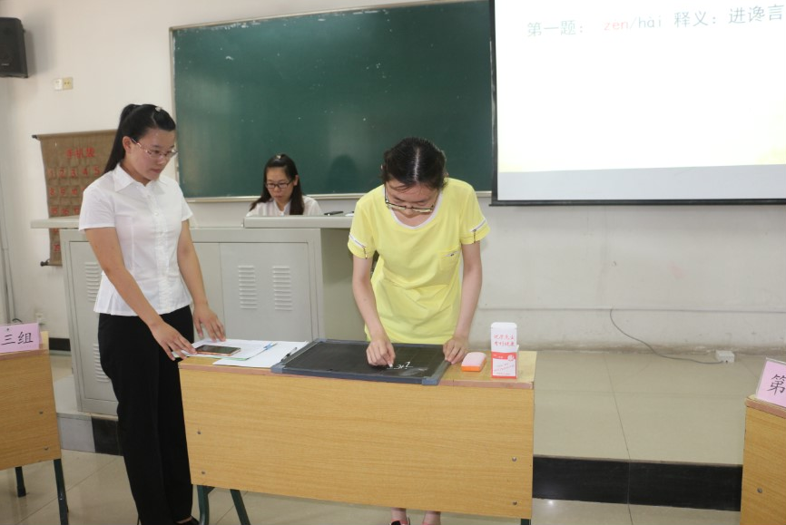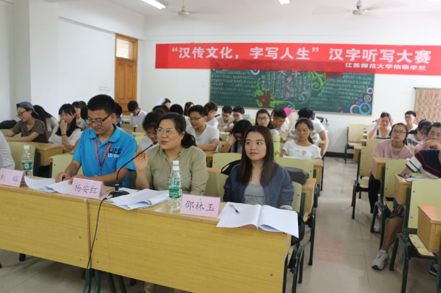 汉字是中华文化的灵魂,是中国人民智慧的结晶。但随着手机和电脑的普及,人们更多地依赖手动输入,提笔忘字的现象在我们周围时常发生,为帮助陶学子培养学习传统文化的兴趣,增强陶学子对中华文化的传承意识和学习能力,提升陶学子自身的综合能力,江苏师范大学伯藜学社于2016年6月22日下午2:30在泉山校区7号楼207教室举办了“汉传文化,字写人生” 汉字听写大赛。此次比赛的评委有文学院资深研究汉语言的杨安红老师、我社指导老师邵林玉以及社长刘辉。创业部14级陶学子王仁娣担任活动主持。