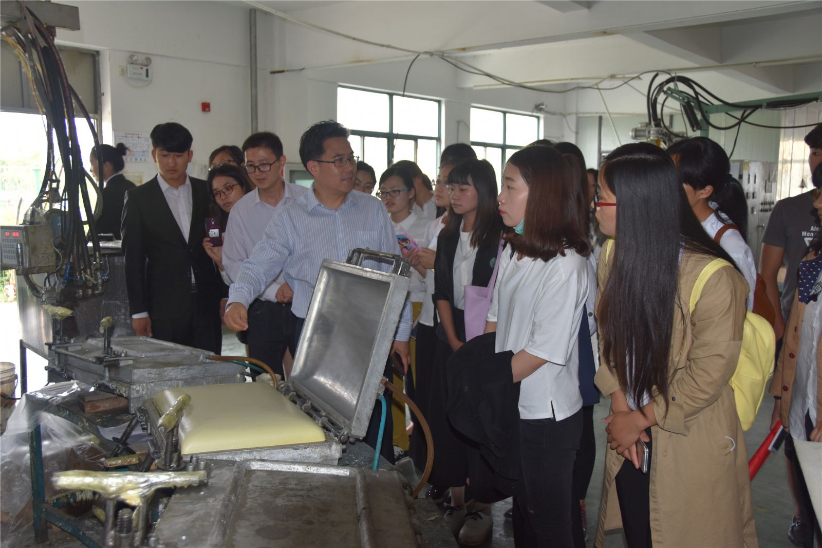 陶学子参观海绵加工厂房
