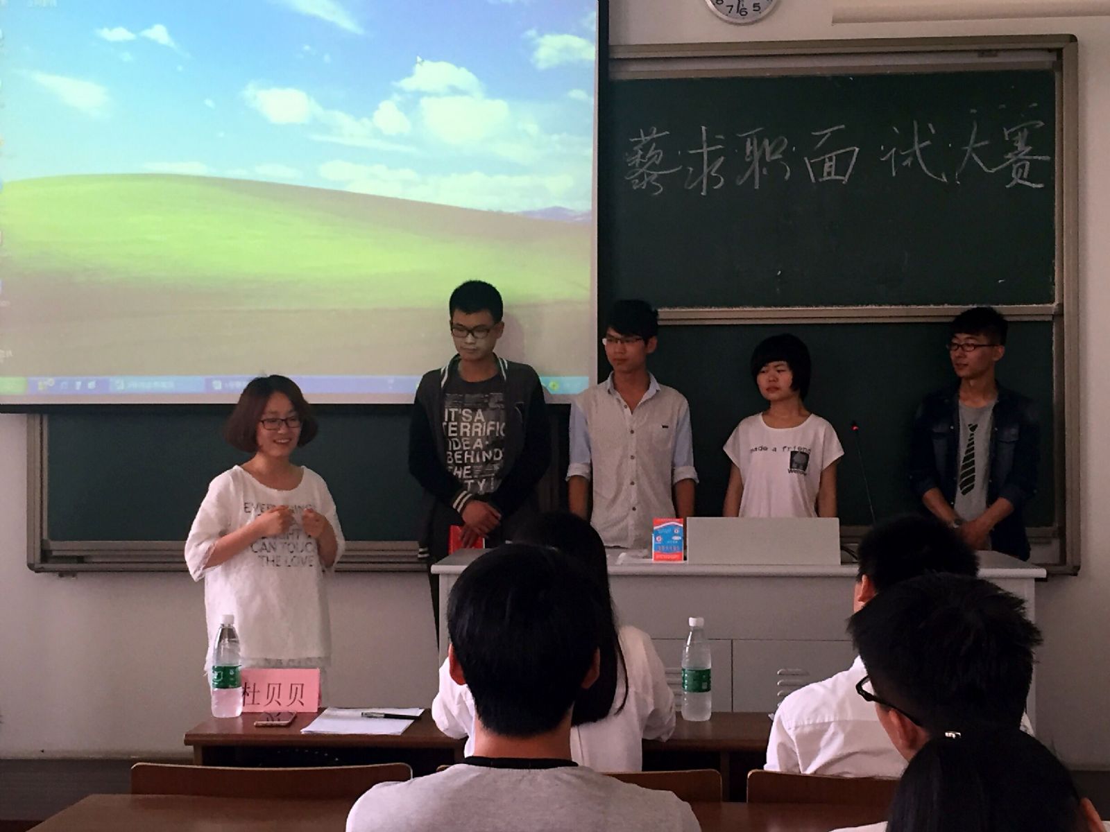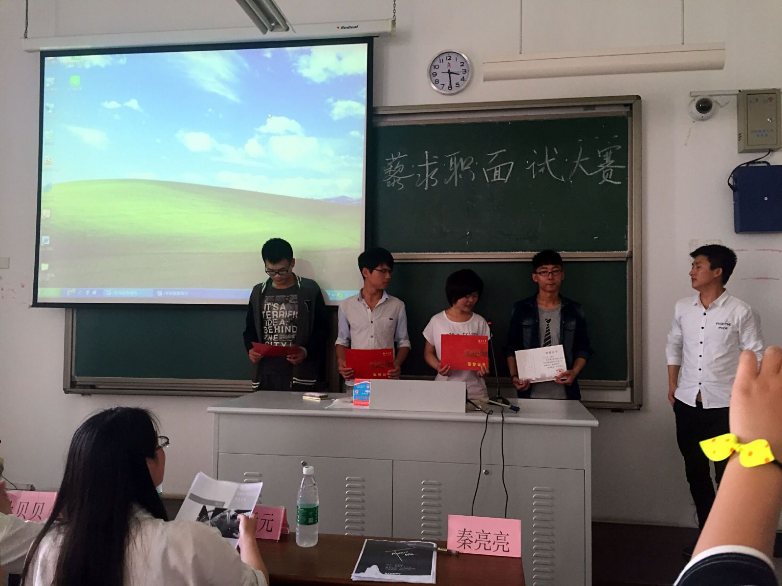 为了增强陶学子们的心理素质和应聘能力,5月25日,伯藜学社扬子津分社在文津楼209举办了一场主题为“面试与我有约,比赛为你纷呈”的面试求职大赛。这次大赛由陶学子蒋银丽主持,张聪聪、刘通、何志伟和赵从明四位陶学子作为选手,并邀请秦亮亮、朱元元和杜贝贝担任比赛评委。