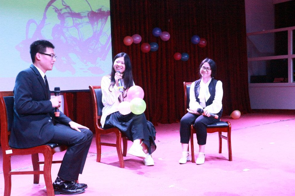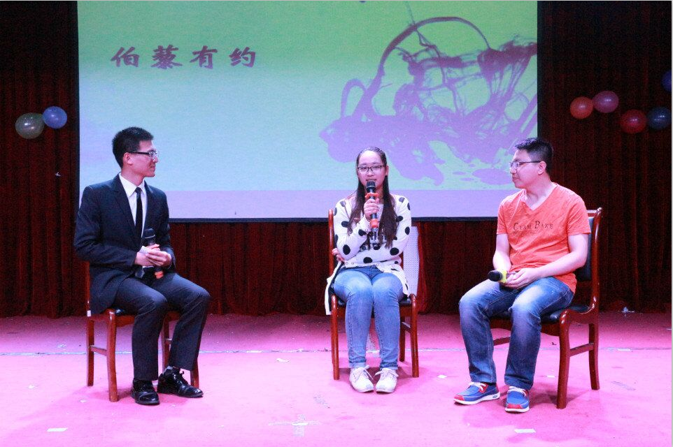 本次晚会在节目表演后特设了“伯藜有约”环节,我社社长刘辉对在学业、就业、创业等方面表现优异的大四陶学子进行了现场访谈。12级陶学子王炳伟、黄煜雯分别向大家分享了关于考研考编方面的心得与感悟;我社前任副社长吴巧艳和谢瑶向大家分享了和学习、生活有关的个人经历,并且给陶学子们提出了关于创业、考公务员等方面的许多宝贵建议;而前任社长张瑞和12级陶学子何珂则给大家分享了自己在伯藜的成长与感悟,正如张瑞所说:“我的人生因伯藜而不同,我的每一次蜕变成长都是因为伯藜,我的大学四年生活,与伯藜息息相关,遇见伯藜,是我的幸运,也是大家的幸运。”活动的最后,我社指导老师邵林玉以一名陶学子的身份上台,对大四陶学子展开怀抱:“不管你们以后走到哪儿,走得有多远,伯藜永远是你们的家,记得常回家看看。”