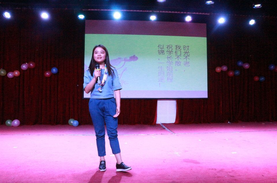 晚会尚未开始,大屏幕上便已循环播放着12级陶学子们在伯藜学社的点点滴滴,一张张熟悉又青涩的笑脸,勾起了12级陶学子温馨美好的回忆。随着刘辉社长和社长助理仝露露的上台主持,晚会终于拉开帷幕。开场一首合唱 《同桌的你》,瞬间将大家带回到了青涩懵懂的学生时代;15级史安妮、史安琪姐妹的舞蹈 《匆匆那年》 让大家在柔美优雅的舞姿中体会依依惜别的感伤;14级文娱部副部长郭丽娟和15级宣传部周玲合作的小品 《兄弟别闹》 诙谐幽默、妙语连珠,将真挚感人的兄弟情义表现得淋漓尽致,让大家在笑声中不禁潸然泪下;手语表演 《感恩的心》更是感动了在场的每一位陶学子。其中13级陶学子许正欢看后热泪盈眶,她说:“这场手语表演勾起了我无数的回忆,曾经我们也作为陶学子代表在南京的舞台上表演过,现在看到学弟学妹我们送来的祝福,感觉很温暖。”14级肖李华和王静在合唱《明天你好》时,真诚地祝福大四陶学子离开校园后能奔向更广阔的天地;还有14级陈海东、韦加能带来的相声《我们被毕了》,说出了无数毕业生的心声;15级侯雅利的萨克斯独奏《海之梦》以及13级李凯、沈诚昊的合唱《外面的世界》更是将晚会推向了高潮,每一个音符、每一句歌词无不表达出对即将毕业的陶学子的祝福。随后,大屏幕播放了大四陶学子们对全体陶学子的寄语。寄语中无不流露出他们对伯藜这个大家庭的热爱和感谢,以及对全体陶学子真挚的祝福。云龙校区陶学子带来的大合唱《送别》则奏响了今晚真正的离别,让人感慨万千。