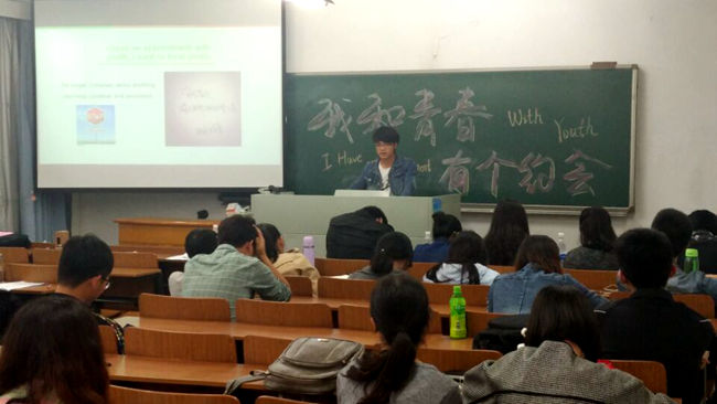 5月21日下午2点30分,江苏科技大学伯藜学社“我和青春有个约会”演讲比赛在江苏科技大学西校区举行。15级主任高宁主持本次比赛,14级外国语学院英语大拿周恬、杜卓霖、黄旭玥及14级副主任韩明超应邀任本次比赛评委,1415级部分陶学子参加本次比赛。