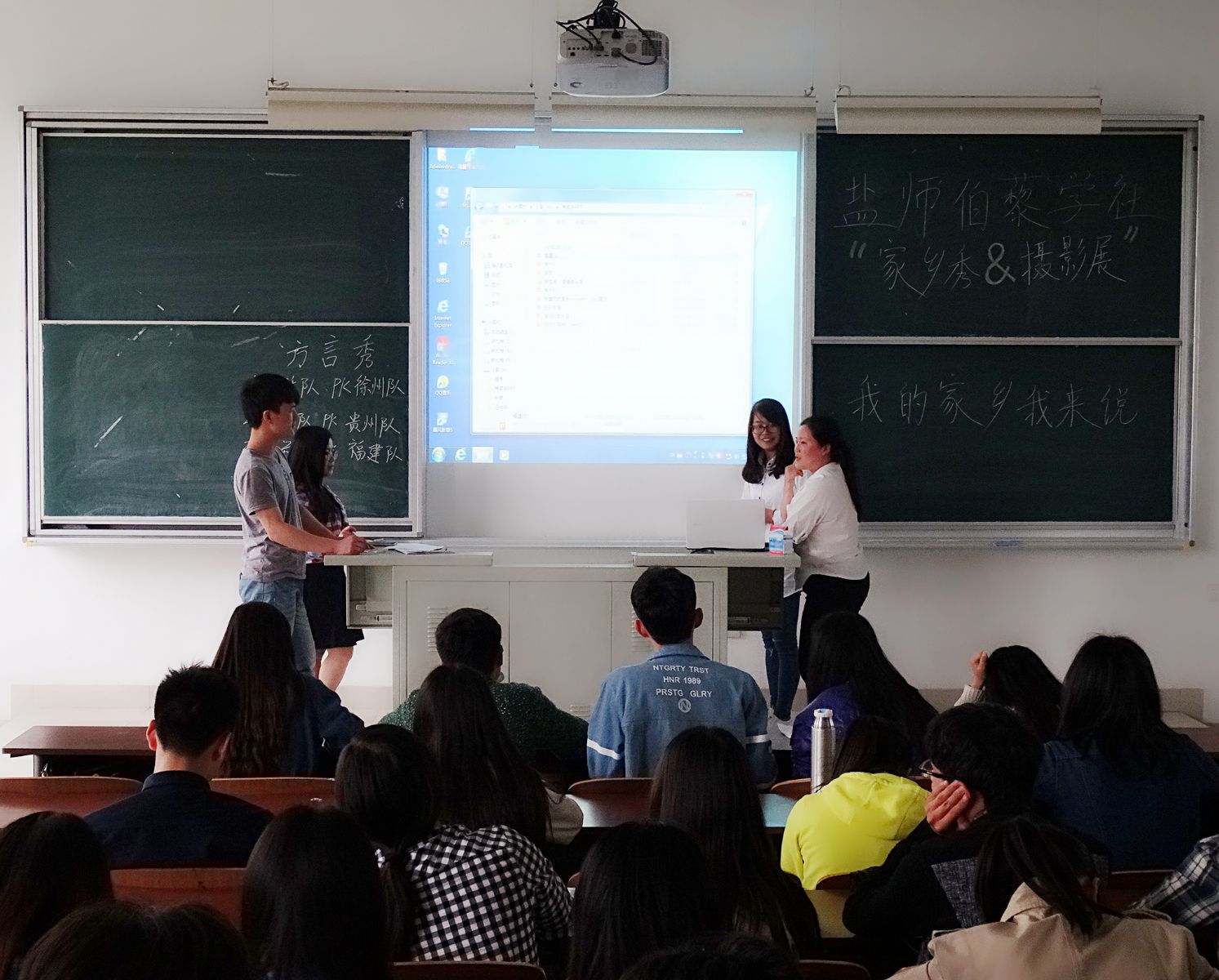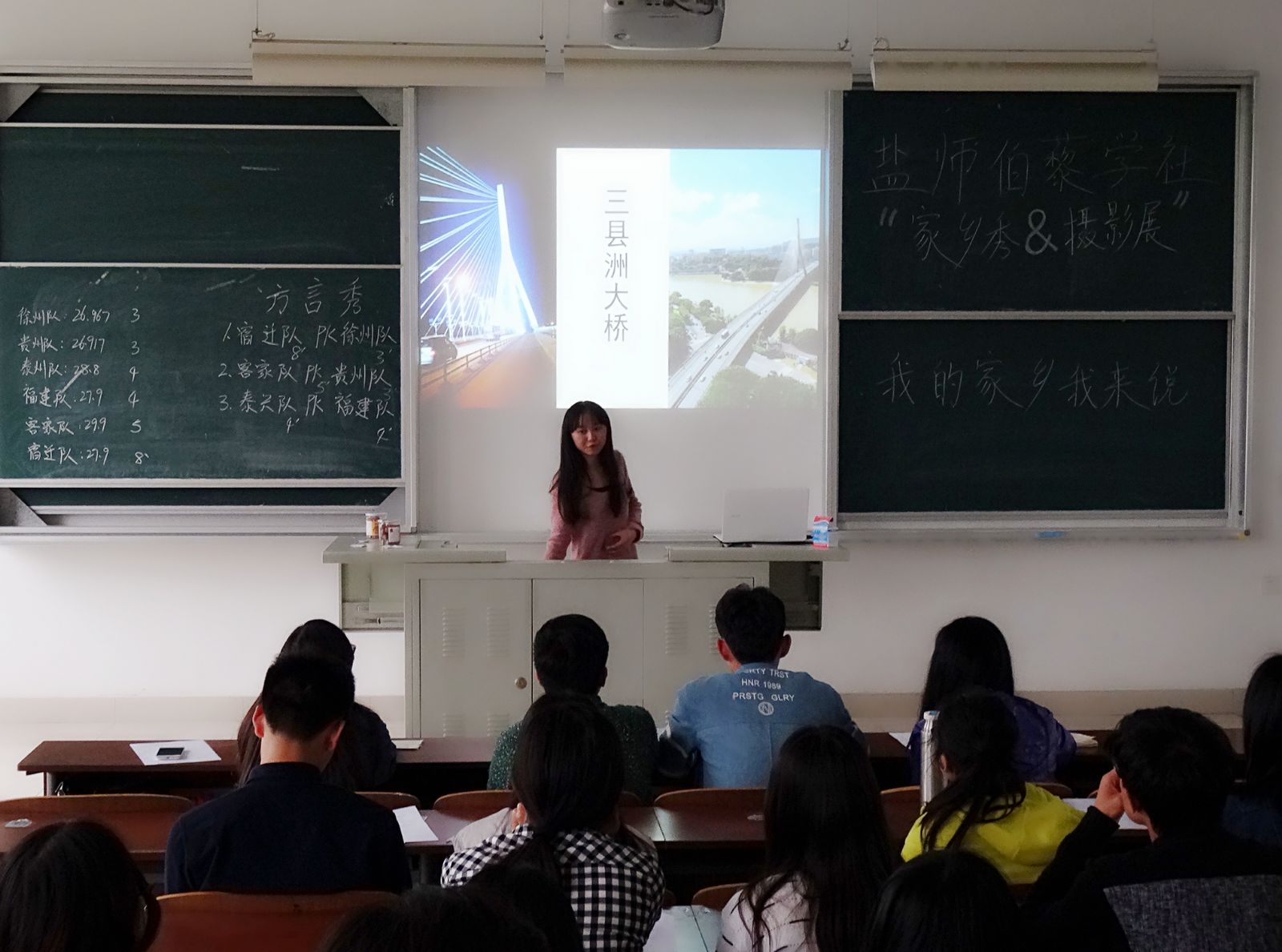 2016年5月8日14:00,盐城师范学院伯藜学社于新长校区综合楼D303教室成功举办“家乡秀&摄影展”之“我的家乡我来说”活动。参赛本次活动的队伍是之前参加家乡菜PK赛的六只队伍,大多数陶学子也亲临现场,观看了此次活动。