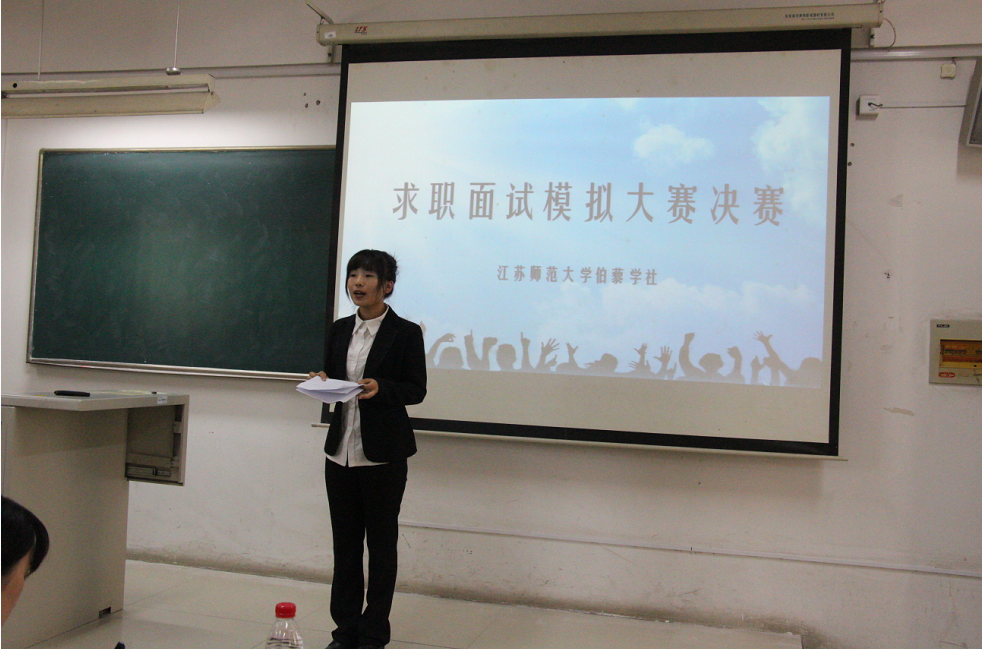 当今社会就业形势越来越严峻,本科生的求职也更加艰难,竞争激烈的求职面试也紧跟着毕业季的步伐的而来。针对这一形势,也为了响应基金会对陶学子就业赋能的号召,提高陶学子求职面试能力,我社特举办“汇伯藜英才,展职场风采”求职面试模拟大赛。此次比赛分为报名、培训、初赛、决赛四个环节,经过前几个环节的激烈角逐,15名陶学子进入了决赛。决赛于2016年5月11日下午1点30分拉开了帷幕。本次面试决赛由我社指导老师邵林玉、副社长王洁和许尔旭担任评委。