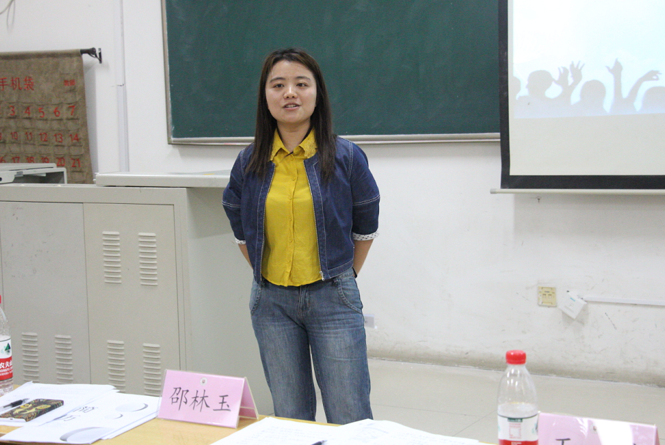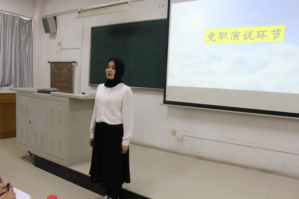 本次决赛的第一环节初露锋芒――竞职演说环节。选手根据抽签顺序参加比赛,每位选手进行三分钟的自我介绍及职业展望,评委根据选手表现进行打分。第一位选手是来自教育技术专业的李佳文,她的求职意向是应聘高中的信息技术老师,她介绍到自己的爱好是摄影,实习期间她做过许多与摄影相关的工作,掌握了很多专业技能如PS、视频、音频剪辑、摄影摄像等。随后,她自己做的一个关于手工制作玫瑰花的小微客得到了邵林玉老师的好评。邵老师评价说:“这是一个很大的亮点,简单的作品里有专业知识的应用,很好的展现出了自己的特长和专业方面的技能”。随后选手各自上台展示,无论应聘师范教育、市场营销还是行政管理的选手们,无不用各具特色的ppt,风格迥异的自我介绍,展示出自己过硬的专业知识与语言表达能力,表达出对未来职业的憧憬。