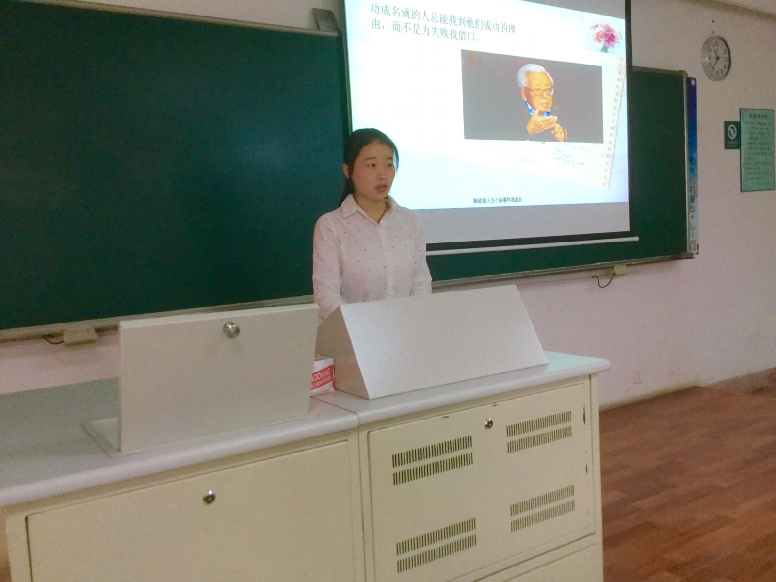 分享会在9点30开始,分三个流程:参赛者分享、同学互动和颁奖环节。参赛同学都准备了精美的PPT,生动的演讲。其中计敏同学介绍了陶爷爷的生平简介和他高贵的品质并讲述了自己的感想和思考,用生动的例子表达了自己的想法,通俗易懂,让人受益匪浅。祝莹同学以《风雨彩虹,铿锵玫瑰》作为PPT的背景音乐,她觉得陶欣伯爷爷的一生和这首歌很相称。诚然,陶欣伯爷爷不就是在经历了各种挫折之后迎来他的成功的吗?周新同学所讲的主题是“仰之弥高,钻之弥坚”,她结合陶爷爷奋斗不止的可贵品质,谈了当今大学生不思进取,虚度光阴的现状,呼吁我们且行且珍惜,充分利用大学时光,从而塑造一个更完美的自己。在分享完之后就到了有趣的互动环节,在此环节中学习部的同学准备了十几道趣味抢答题,答对现场送小礼品!现场的气氛马上被调动起来了,同学们都踊跃地回答问题。互动环节结束后,由前任社长李心怡为获奖的陶学子们颁奖,获奖情况是:一等奖计敏,舞台表现奖杭辉芬、梁艳和杨明。