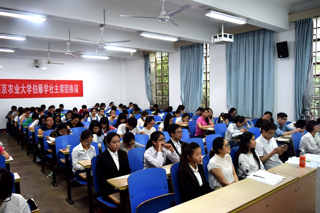 为了增加伯藜学社管理层的活力,促进新老社员的交流,让学社得到更好的发展,2016年5月4日,南京农业大学伯藜学社成功举办了主席团和部门负责人换届大会。