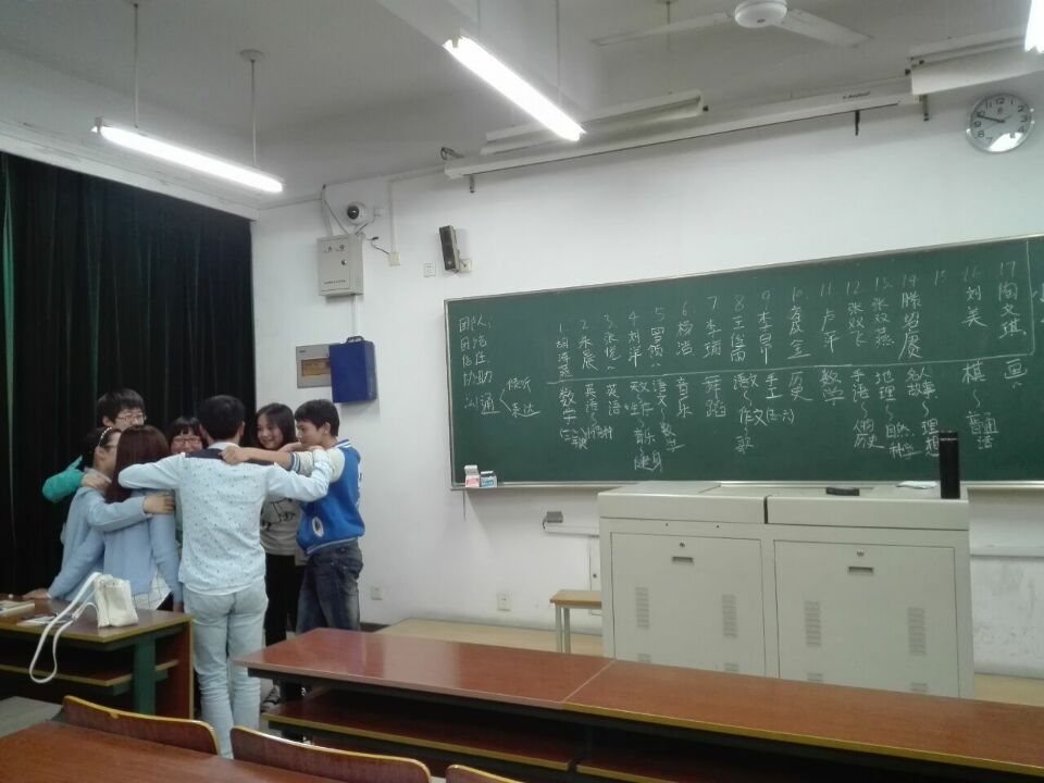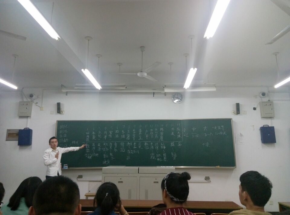 会议始,支教团队的每位队员每人有一分钟时间上台对大家说出自己的想法,并记录在黑板上,时间关系,大家一致决定,后期经商讨,选出可实施性强的课程方案。