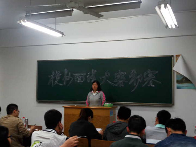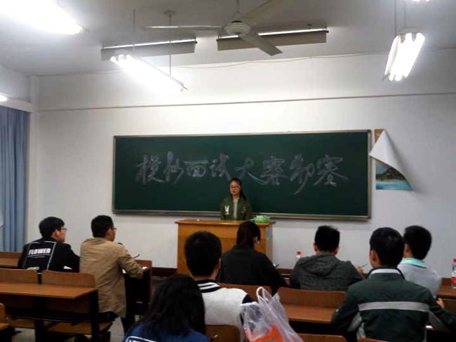 2016年4月26日下午6点,大雨淅淅,江苏科技大学伯藜学社模拟面试大赛初赛如期在江苏科技大学西校区综合楼313顺利举行。江苏科技大学伯藜学社社长王德富、三自协会会长、职业发展与规划协会会长与12级部分优秀陶学子任本次大赛评委,15级陶学子龙铃铃任本次大赛主持人,1415级的部分陶学子参与本次比赛。