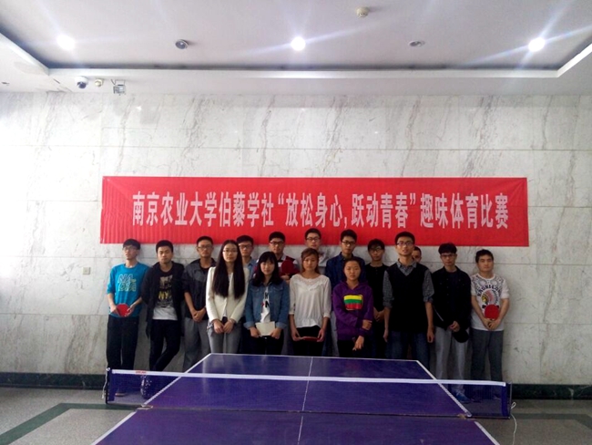 2016年4月15日至16日,南京农业大学伯藜学社在南京农业大学逸夫楼二楼举办“放松身心,跃动青春”趣味体育比赛。此次活动由伯藜学社学习部主办,参与人员包括本校和外校的陶学子。该活动促进了陶学子加强身体锻炼,积极参加体育活动,培养健康良好的心态。