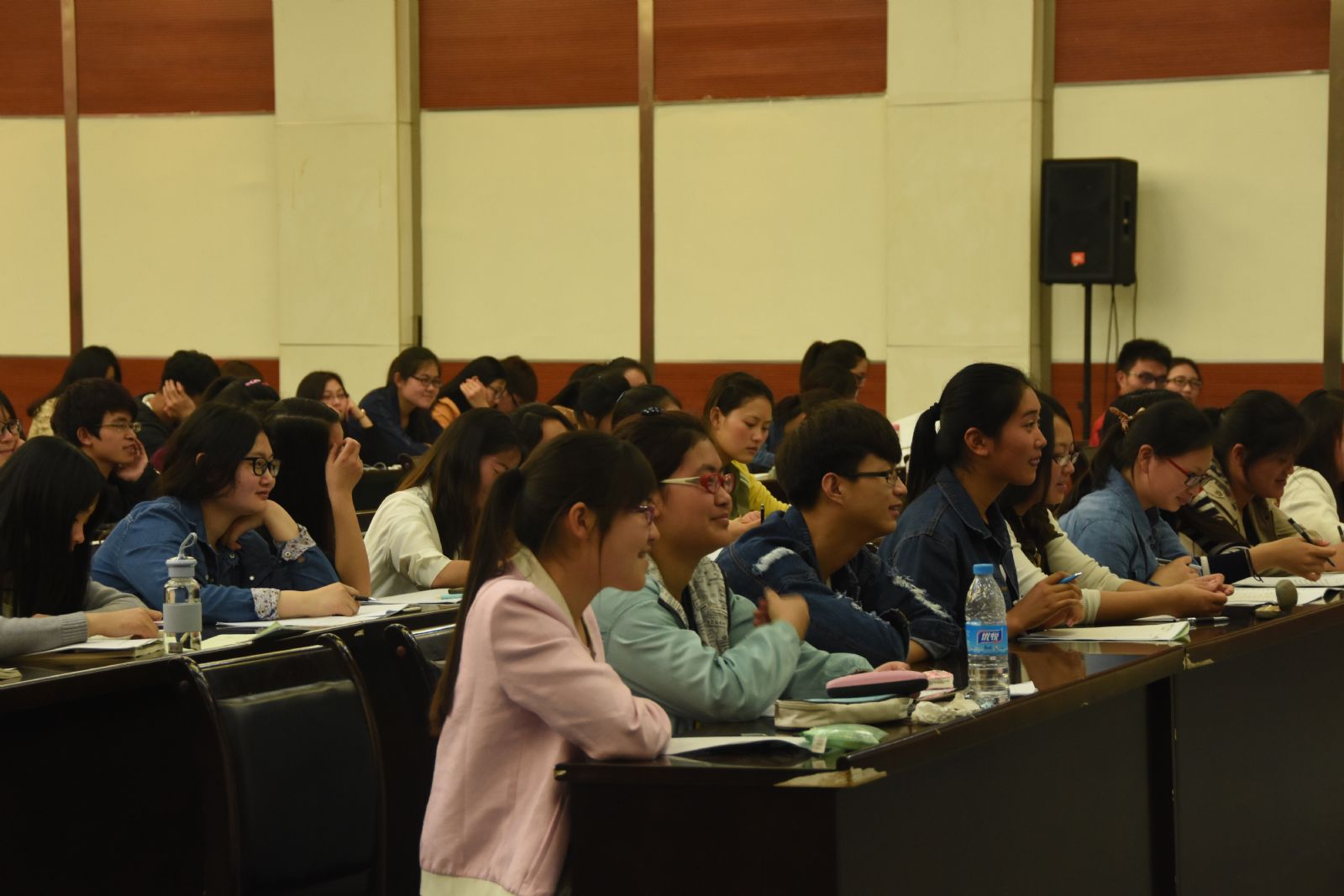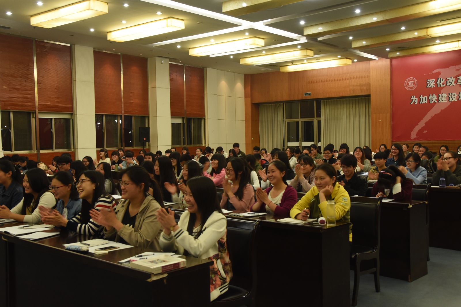 管爱花教授以幽默风趣的语言和陶学子们分享自身的求学经历,鼓励大家学会勇敢坚强。她说:“面对困难,不能低头,要学会冷静思考,即使处在困境也要从容面对。”关于如何面对大学生活,管爱花给出了以下意见:大学学习要以自学为主,要多读书,读身是提升自身综合素养的重要途径;独立安排好自己的生活,学会自我管理,包括自我时间的管理、自我情绪的管理等等;人际交往方面不要太过强求,要学着尊重他人,知心的朋友不求多但求精;生活中,要认清自己,不随波逐流,不囿于周边小圈子。她说:在大学中,应尽可能地多去尝试各种兴趣爱好,找到自己的长处,并着力去发展它。讲座中,她还即兴为陶学子们展示了自己唱歌的爱好,引起声声喝彩,现场的气氛十分热烈,陶学子对管老师纷纷点赞。