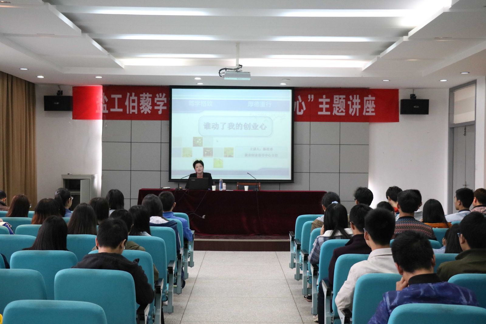 2016年4月16日上午,盐工伯藜学社“谁动了我的创业心”主题讲座在盐城工学院怀德楼3楼隆重举行。此次讲座邀请了就业创业科的陈桂香科长和刘老师为我们进行演讲,两个校区的70多名陶学子们热情参与。