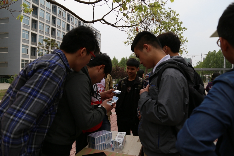上午10:30分,四组参赛队员准时到达学校青年广场,在预先设置好的比赛地点领取本次营销挑战赛的货物——印有徐州医科大学风景图的精美扑克牌,每组二十五副。四组选手各显奇招,有的采取捆绑销售,有的以抽奖为福利,目的是最大程度地吸引往来的同学们的注意,激起购买欲望。活动现场,选手与购买扑克牌的同学之前讨价还价的欢笑声不绝于耳,现场气氛火爆不已。下面是每个营销小组的营销战况: