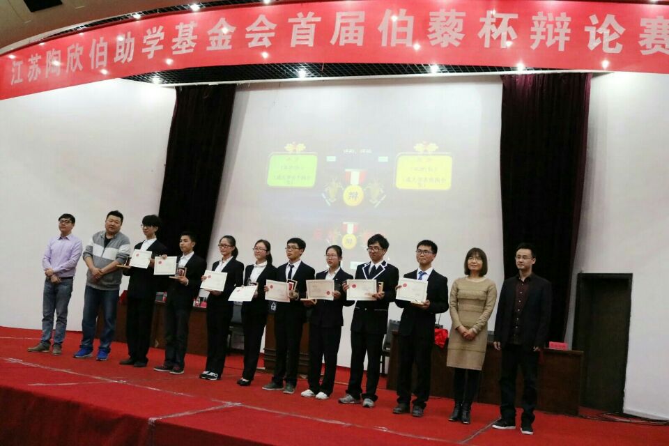 2016年4月9日,江苏陶欣伯助学基金会首届“伯藜杯”辩论赛在南京林业大学教五楼报告厅如期举行。本次辩论赛选手为来自江苏陶欣伯助学基金会项目高校伯藜学社的31名陶学子,出席的评委有江苏陶欣伯助学基金会秘书长张利伟、行政总监刘萍、南京交通台《欢乐点点》节目主持人大聪老师、第三届全国捭阖辩论群英挑战赛全程最佳辩手罗斌、南京林业大学学生工作处副处长姜俊玲老师、在宁陶学子校友之家副会长赵久龙,出席此次辩论赛的还有江苏陶欣伯助学基金会各项目主管以及各项目学校的陶学子代表。
