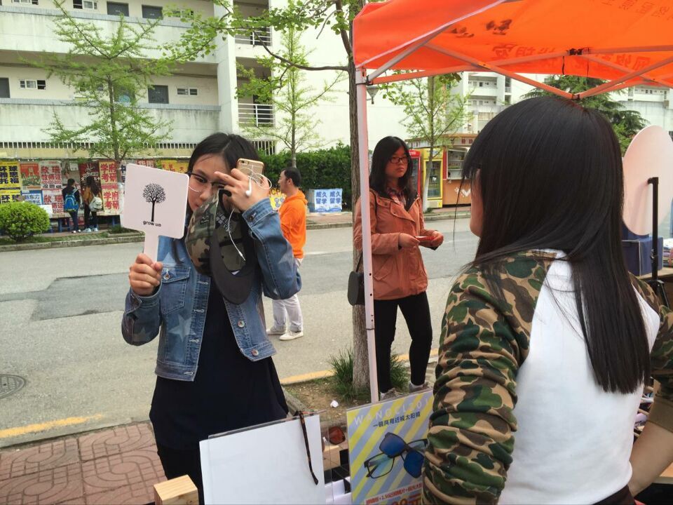 “巅峰购”在南京师范大学伯藜学社内招募陶学子作为工作人员,帮助陶学子获得成长经验的同时,亦保证活动更好地举办。活动举办当天热闹非凡,陶学子们或现场调研或发传单或引导或解说,各司其职忙得不亦乐乎。“望客眼镜体验官”遵照领取流程,在工作人员的引导下领取眼镜。现场还有为同学们准备的抽奖活动,很多同学抽到太阳镜、墨镜、擦镜布、眼镜盒等产品。这样免费体验的活动受到同学们热捧。