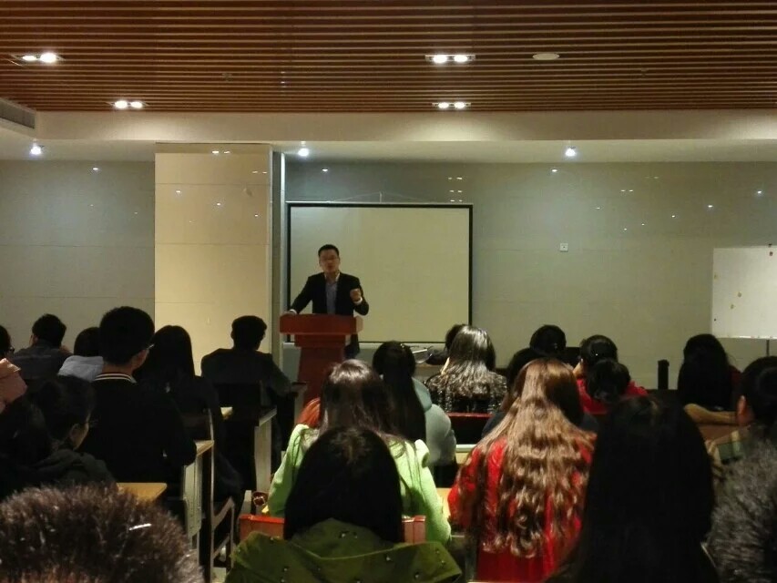 本次座谈会的主讲人是王路学长。王路学长经过不断的前期学习,大三时果断尝试创业。从专业培训机构到成人培训机构,企业一步步做大,如今稳居苏中地区第一。