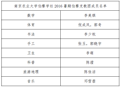 2016年3月底,南京农业大学伯藜学社根据江苏陶欣伯助学基金会《伯藜支教项目指南》积极开展支教成员选拔活动。整体选拔流程分为3个阶段,分别是初选、面试和说课。