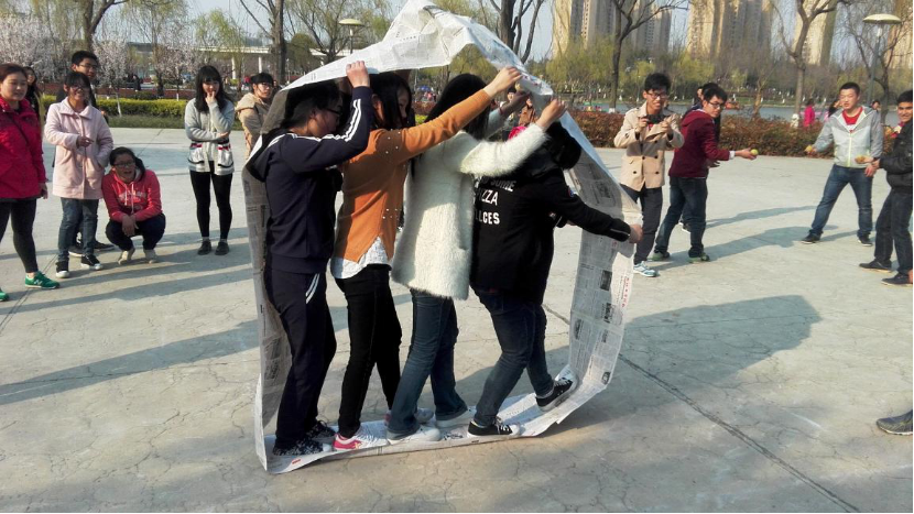 相比于前两个活动项目,“贪吃蛇”则是一个团队作战项目,考验的是陶学子团结合作的能力。然而这也并没有难倒他们,每个队伍成员之间的合作都很默契,在游戏中真正体会到了“团结就是力量”的真正含义,并且增强了队员之间的相互信任和理解。最后一个游戏接力赛,总计四个游戏项目,都是重在培养学员团结一致、克服困难的能力。比赛开始前每支队伍都紧锣密鼓地准备着,比赛开始后,每支队伍之间都你追我赶,毫不示弱。有的队伍在游戏环节卡住了,但他们也仍不放弃,坚持不懈地完成所有项目。只要不抛弃、不放弃,输赢并不重要,我们在乎的只是这段宝贵的经历和它给予我们的精神层面的收获。