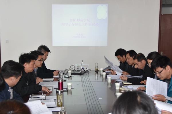 3月30日下午,淮阴师范学院召开陶学子导师组工作研讨会,学生处副处长展伟、陈红,各二级学院副书记参加了此次研讨会,会议由学生处陆林召处长主持。