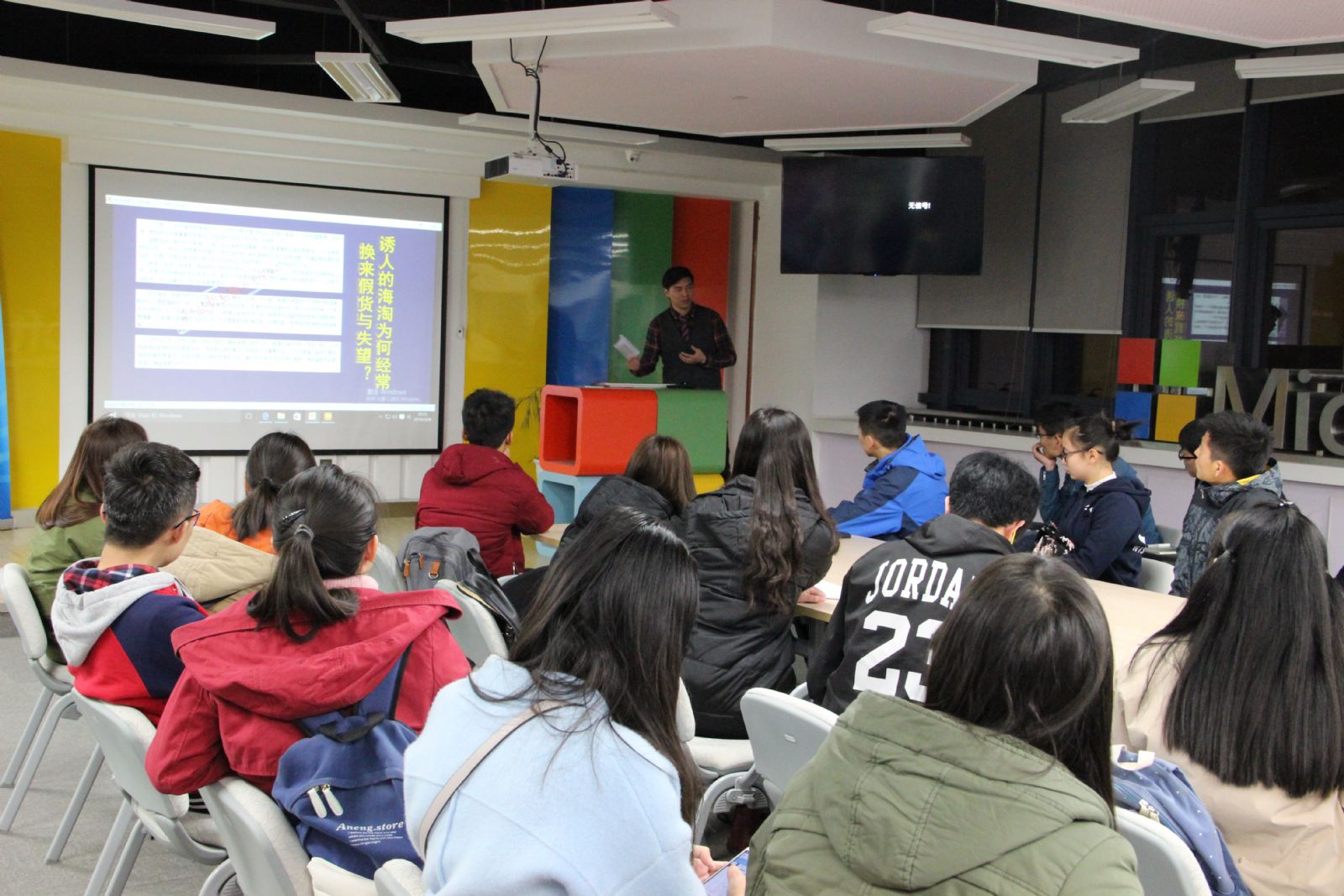 首先,江苏微软创新中心的首席运营官王为松向陶学子们着重介绍了公司的创新项目,鼓励陶学子们要怀揣梦想、关注经济、科技发展,紧跟日新月异的时代变化。目前90后的青年人是未来创新创业的主攻手,所以,王总激发在场的陶学子,要多多提升自己,做一名有创新创业头脑的年轻人。王总还给大家介绍了机器与人之间的互动交流,并邀请陶学子上台体验,陶学子们积极参与,踊跃提问,气氛活跃。