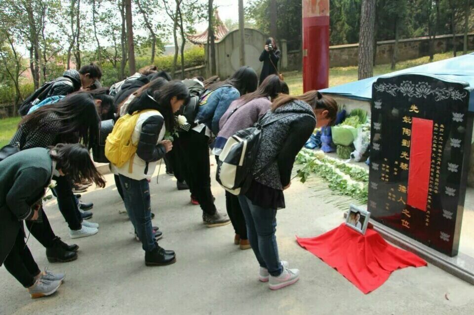 基金会的张利伟秘书长主持了祭拜仪式,江苏陶欣伯助学基金会的老师、陶学者、受助高校的陶学子、各学校指导老师以及允公小学的师生代表手持鲜花,面对刘光藜女士的遗像集体默哀1分钟并三鞠躬,致以哀思和敬意。