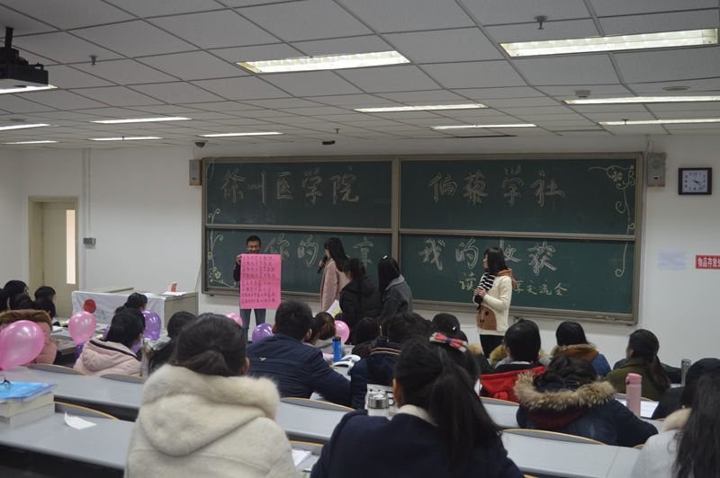 2016年3月13日下午,徐州医学院伯藜学社在主楼c座101成功举办了读书分享交流会的活动,本次的活动主题为“你的分享,我的收获”,此次活动由学习部承办。下午1点半,近八十余名陶学子到场签到。