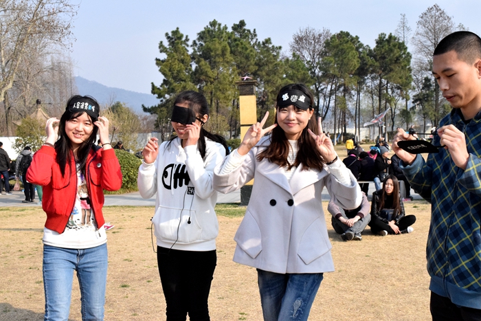 到达玄武湖时,踏青的人比比皆是,男女老少自得其乐。我们穿过人群,沿着玄武湖沿岸走了一段小路欣赏湖景,最终在一处空旷的场地停下来休整与玩游戏。