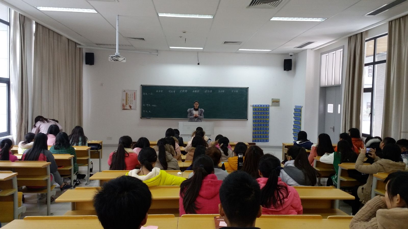 社长李秋同学激昂且发人深省的动员演讲拉开了大会的帷幕。然而,在“第一个吃螃蟹”的同学慷慨进行完竞选陈词后,大会陷入了略久的“尴尬”与令人颇为“抓狂”的局面中—–上台之人寥寥。社长“大人”见势不妙啊,明明会前看到好多小伙伴积极备稿的,却临阵退缩。于是,机智如社长,一个大步流星至讲台,再次发挥文学院女生特长,晓之以理、动之以情,犹如一温柔又“毒辣”的长鞭,鞭在脊背,鞭进内心。效果显著,伙伴们势头见足,“火药味”渐浓。
